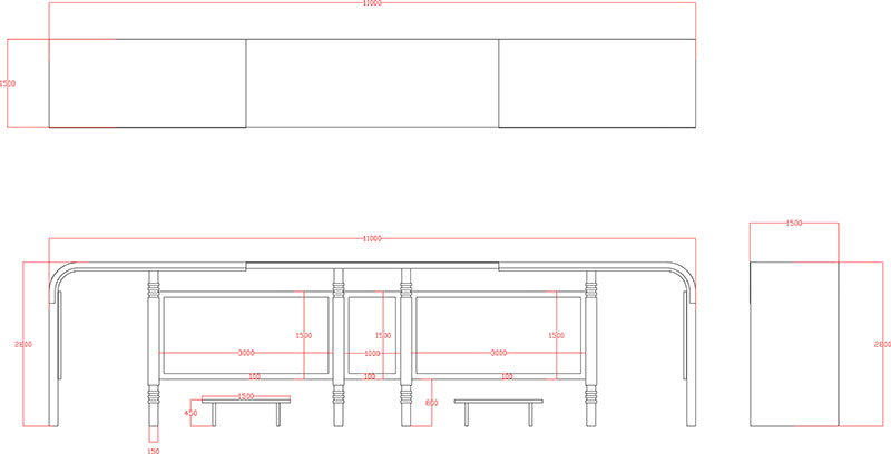 此款現代候車亭CA-2063主體采用鍍鋅鋼結構,表面采用氟碳金屬烤漆工藝,視窗面板采用鋼化玻璃,燈箱內置LED燈。具有外形美觀、表面耐腐蝕、抗風性能強、使用壽命長等優點。產品的樣式、尺寸、顏色、材質、配置等均可按需定制。