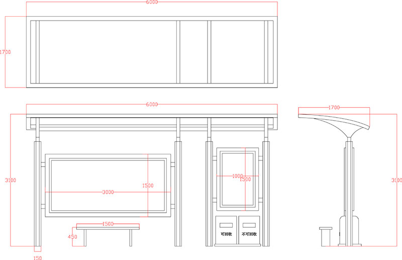 此款時尚簡約候車亭HCT-60采用鍍鋅鋼結構,表面采用氟碳金屬烤漆工藝,視窗面板采用鋼化玻璃,燈箱內置LED燈。具有外形美觀、表面耐腐蝕、抗風性能強、使用壽命長等優點。產品的樣式、尺寸、顏色、材質、配置等均可按需定制。