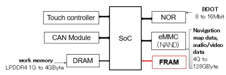 環(huán)境傳感器&攝像,車聯(lián)網(wǎng)通信技術(shù)和人工智能決策平臺是自動駕駛技術(shù)的核心技術(shù)。傳感器,CAN通信,infotainment這些系統(tǒng)需要實時和持續(xù)地存儲當(dāng)前狀態(tài)信息,并進行實時分析和處理。因此需要提高存儲器的性能和耐久性設(shè)計,這些要求使FRAM成為理想的存儲選擇。