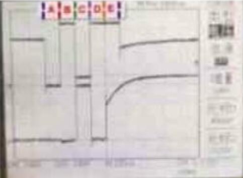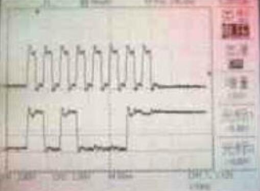 將示波器的通道1連接到寫(xiě)使能信號(hào),通道2連接到數(shù)據(jù)端D7。如圖1 所示,上方的波形為通道1接收的數(shù)據(jù),下而的波形為通道2接收的數(shù)據(jù)。設(shè)計(jì)輸入向量測(cè)試,當(dāng)?shù)刂窞镺OO時(shí),將片選端CS置為低電平,圖1 中,A區(qū)WT=*0”,RD=“1“,RD= “0”,讀出寫(xiě)入數(shù)據(jù) 為“0”; B區(qū)WT=“1”,數(shù)據(jù)為“0”; C 區(qū)WT=“0”,RD=“1”,寫(xiě)入數(shù)據(jù)為“1”D 區(qū)WT-“1”,RD-“1”,為了更好地觀察讀出“1”時(shí)端口的電平變化,該段不進(jìn)行讀寫(xiě),在輸出端口上加弱的低電平信號(hào); E區(qū)WT=“1”,RD=“0”,讀出數(shù)據(jù)為“1”,可明顯地看到讀出數(shù)據(jù)“1”的過(guò)程。從圖中可以看到數(shù)據(jù)“0”和“1”被成功地寫(xiě)入和讀出。