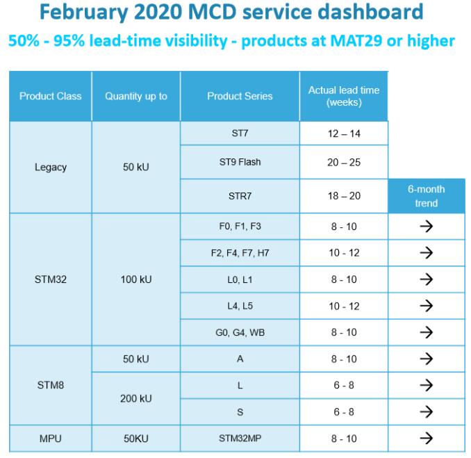 從ST最新發(fā)布的產品交期表來看,很多產品的交期確實有變長的趨勢。但是正常排單的客戶,交貨受影響還是比較小的。考慮到疫情可能帶來的上下游產業(yè)的影響,大家還是盡早排單吧.意法半導體MCU代理商英尚微電子已為物聯網,5G,汽車行業(yè)等應用領域提供了大量優(yōu)質可靠的MCU產品.