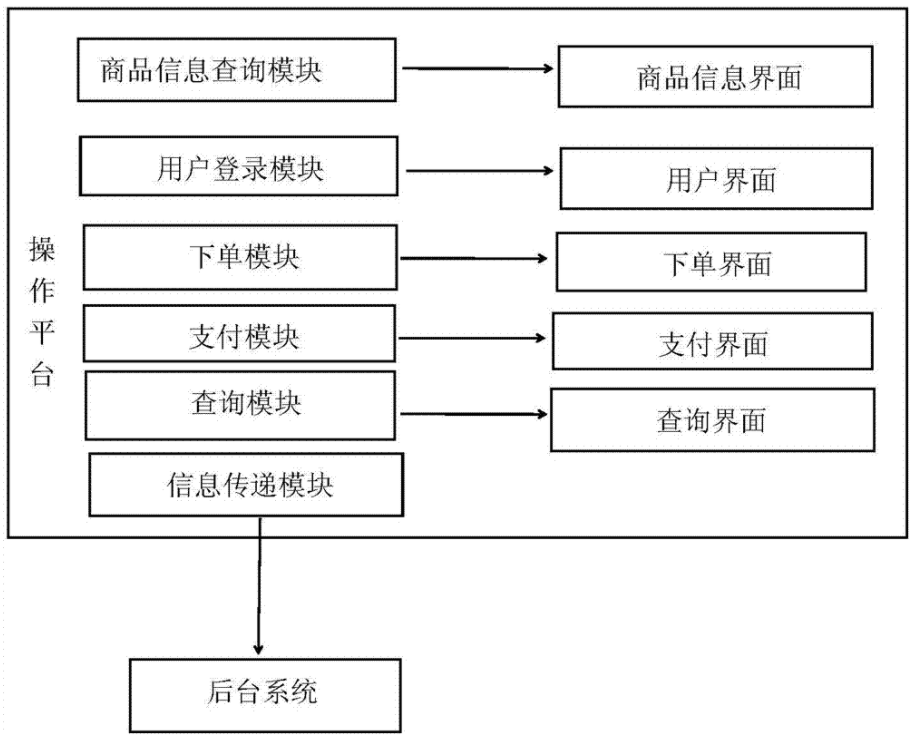 基于實物展示的共享網(wǎng)絡銷售柜,該銷售柜柜設有多個展示臺和操作電腦;展示臺用以擺放展示商品,展示柜分為多層多格,用以存放不同的物品;操作電腦連通公共網(wǎng)絡,具有主機和操作平臺;操作平臺上設有商品信息查詢模塊,用戶登錄模塊,下單模塊,支付模塊,查詢模塊和信息傳遞模塊;買家通過展示臺選中商品后,在操作平臺上登錄商品信息查詢模塊,通過該商品信息查詢模塊的商品信息界面了解商品信息,通過用戶登錄模塊的用戶界面登錄,通過下單模塊的下單界面購買商品,通過支付模塊的支付界面完成付款和打印發(fā)票,通過查詢模塊的查詢界面查詢購買信息;信息傳遞模塊將用戶購買信息通過網(wǎng)絡發(fā)送給商家;商家接收到購買信息后,通過物流將產(chǎn)品發(fā)送給買家。