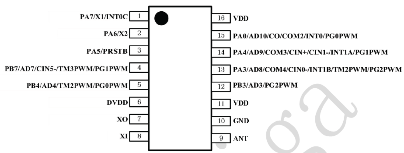 藍(lán)牙芯片的BLE射頻發(fā)射功率:最高3dBm。BLE接收靈敏度:-85dBm。包括4KW OTP ROM和256字節(jié)的SRAM。1個(gè)16位硬件定時(shí)器、兩個(gè)8位定時(shí)器(可作為PWM生成器)、三個(gè)11位硬件PWM生成器、一個(gè)硬件比較器、9個(gè)IO引腳、6通道12位ADC、ADC參考電壓、一組1T8X8硬件乘法器。時(shí)鐘模式內(nèi)部高頻振蕩器,內(nèi)部低頻振蕩器,外部晶體振蕩器。喚醒的IO支持兩種喚醒速度:正常和快速,大部分單周期指令,可設(shè)定堆棧指針和堆棧深度。MS1586的工作溫度:-20℃~+70℃,工作電壓為2.2V~3.6V,封裝采用SOP16(150mil)。